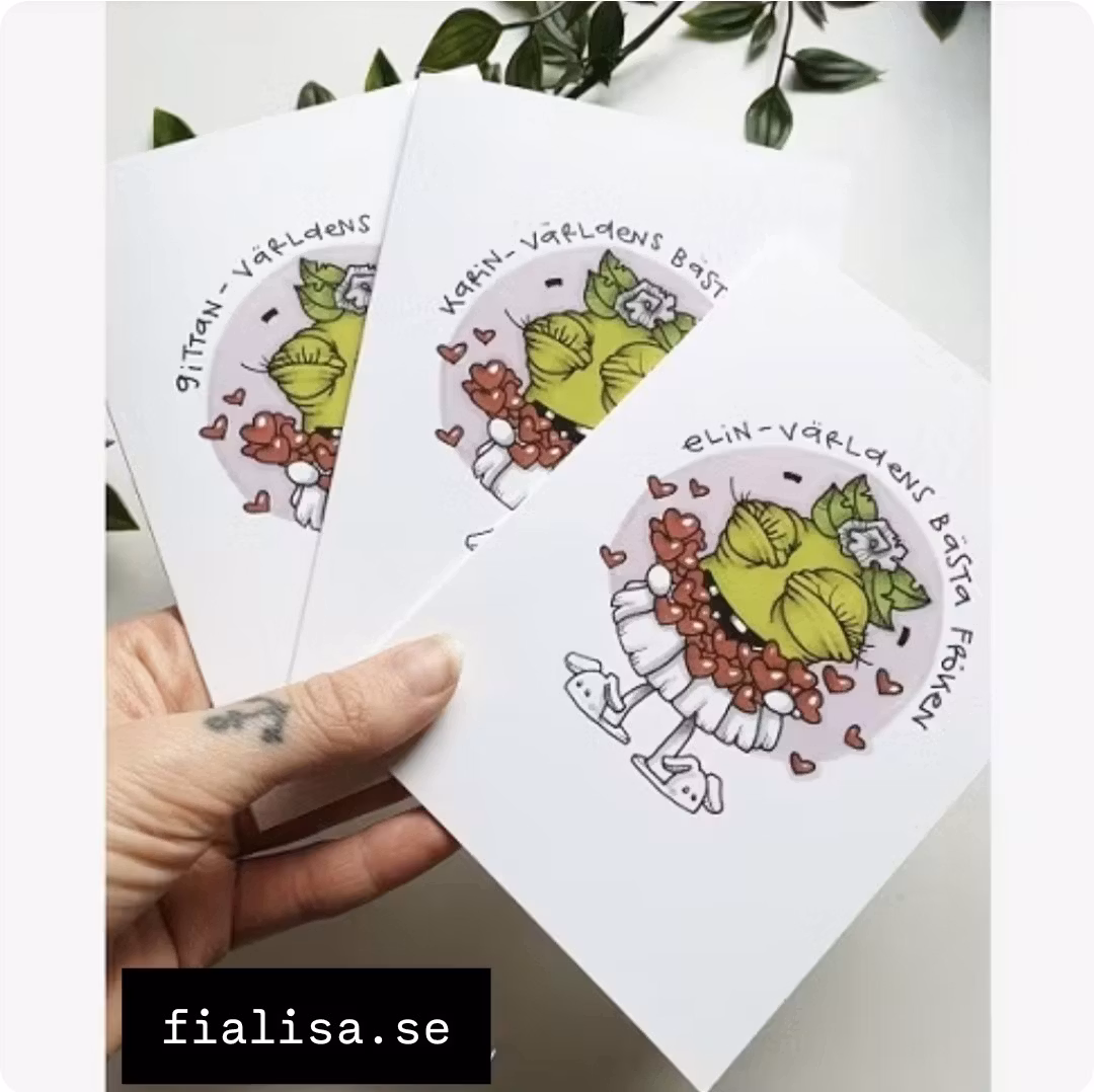 Grattiskort Gullepruttan, med hela famnen full i kärlek!