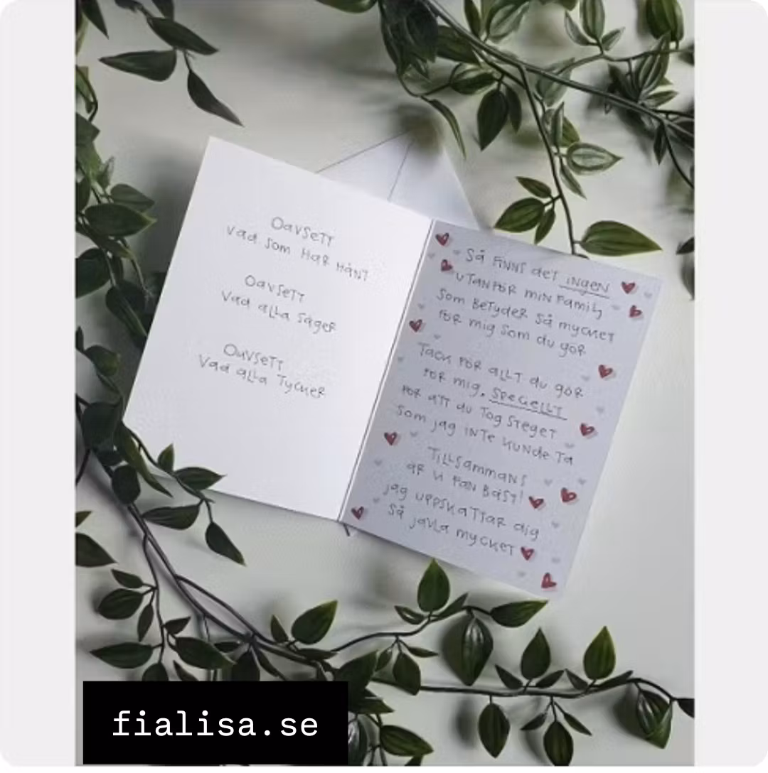 Kortet är dubbelvikt och 11x15 cm stort. Kuvert ingår, du kan även beställa kortet med text om du så önskar :)