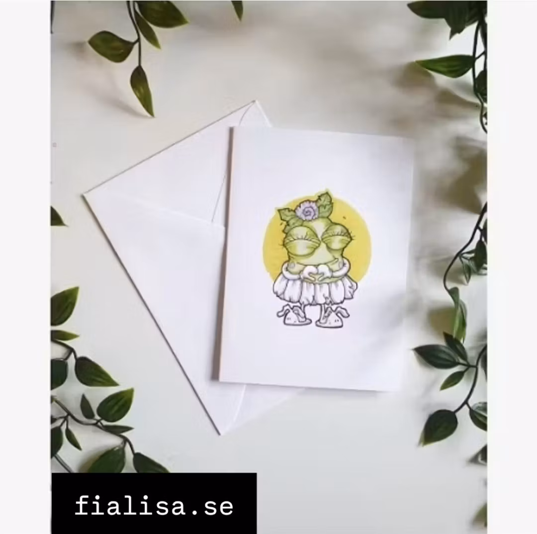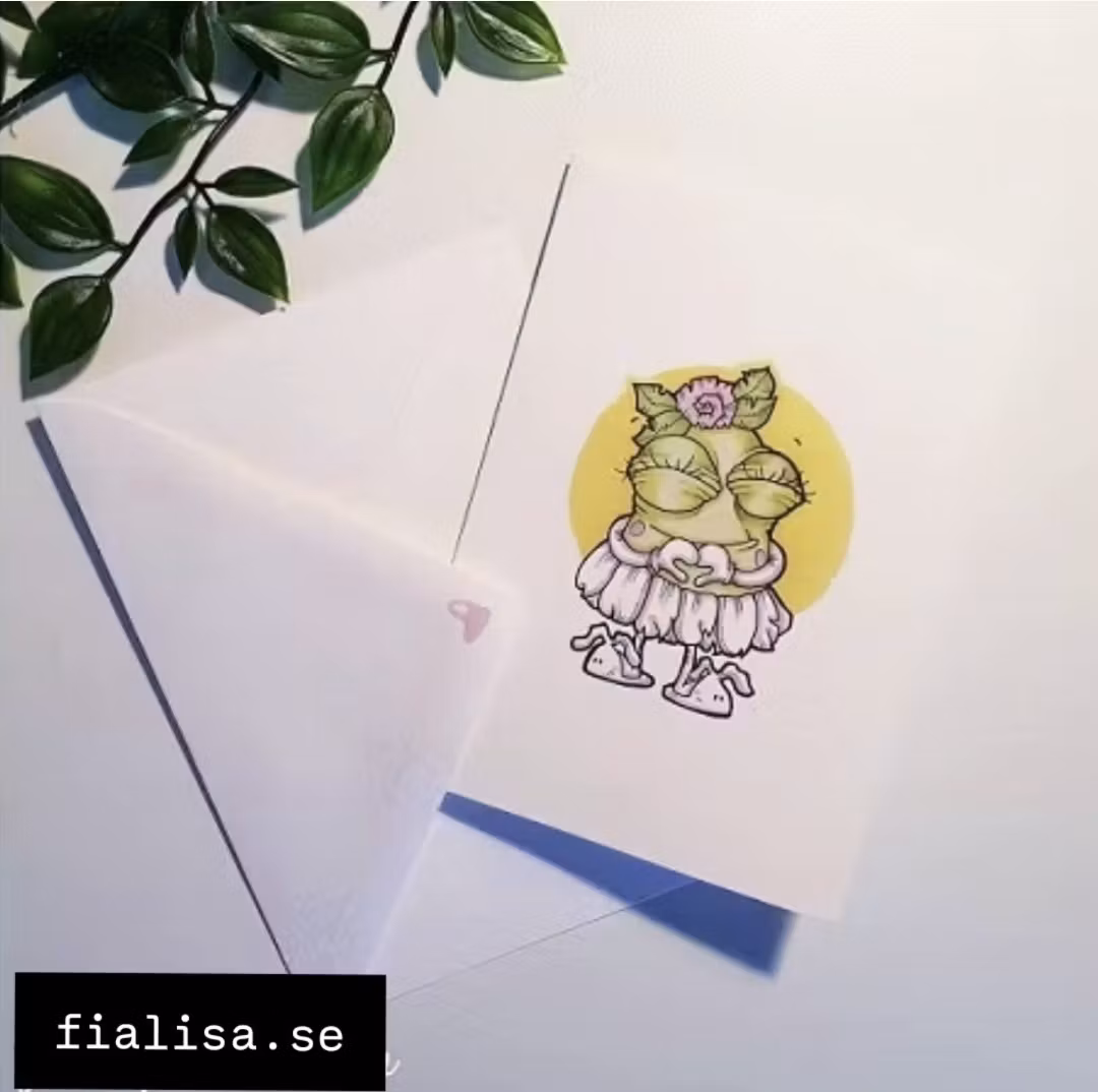Motivet på kortet är ritat av mig för hand, med tusch,