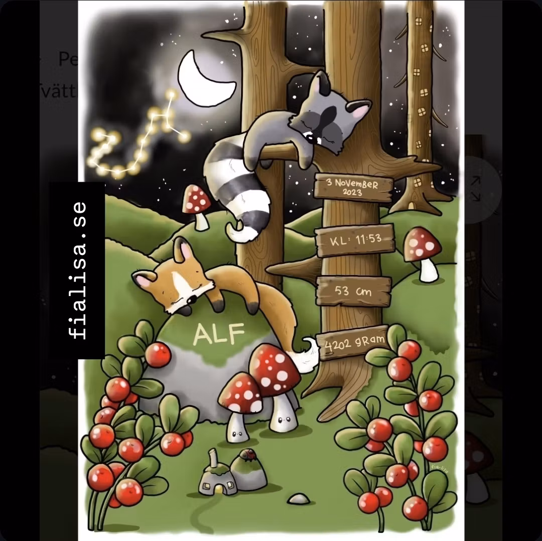 Motivet har jag ritat digitalt och när du beställer så fyller jag i din information för hand, vilket gör att det kan skilja lite.