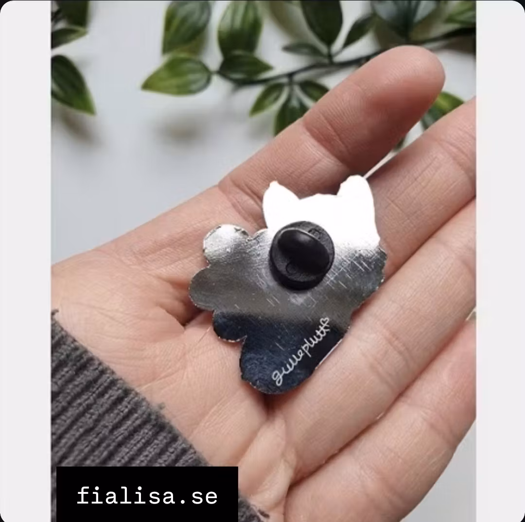 Emaljpin, i silver. Gummilås på baksidan.